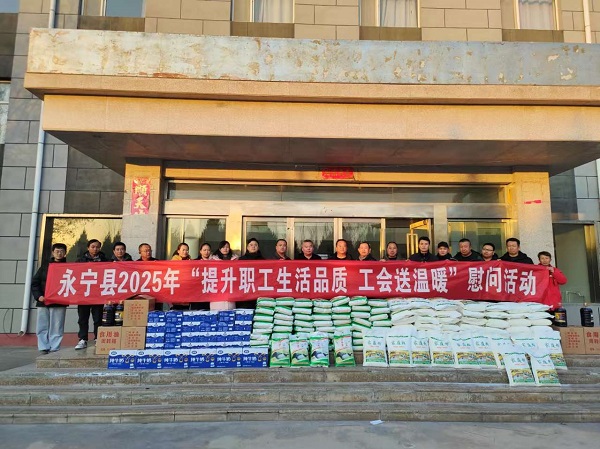 2024年12月25日下午,永寧縣總工會(huì)陳邵峰常務(wù)副主席及幫扶中心工作人員一行到天琛公司對(duì)現(xiàn)場(chǎng)值守人員進(jìn)行“雙節(jié)”前的慰問,并將米、面、香油、牛奶等慰問品一一發(fā)到員工手中。
